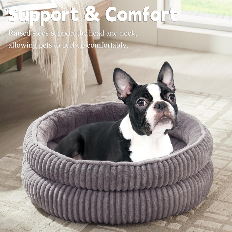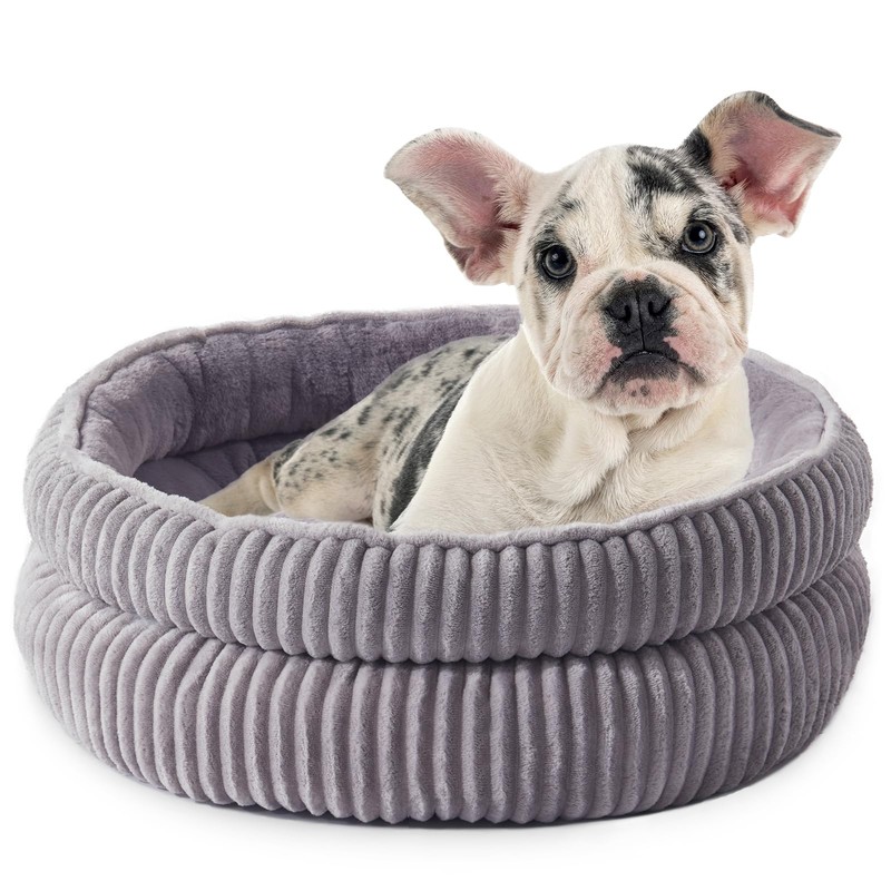 Dog Beds for Small Dogs, Puppy Kennel Bed - Round Cat Beds for Indoor Cats,Comfy Durable Pet Sleeping Bed, Washable Deluxe Plush Kitten Bed & Non-Slip Bottom, Gray 24" L x 24" W x 9" Th