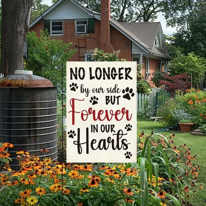 Dog Bereavement Gifts Pet Memorial Garden Flag No Longer By Our Side Forever in Our Heart Small Double Sided Burlap art Stained Glass Style Garden Flags 12 x 18 Inch for Outside