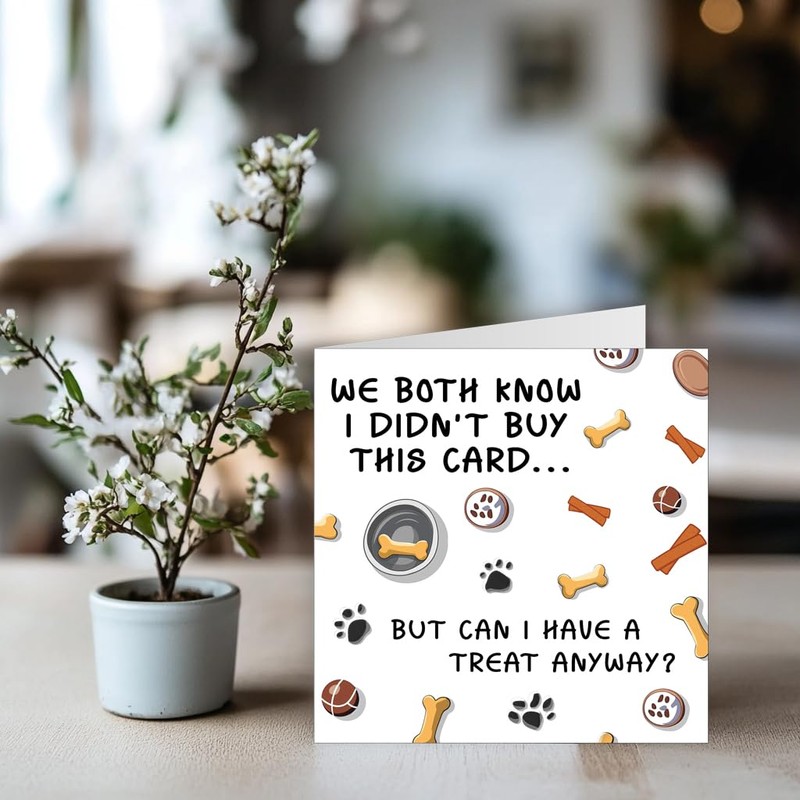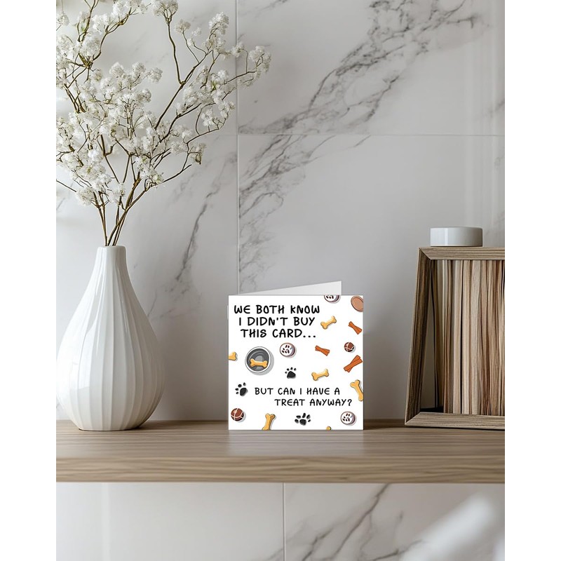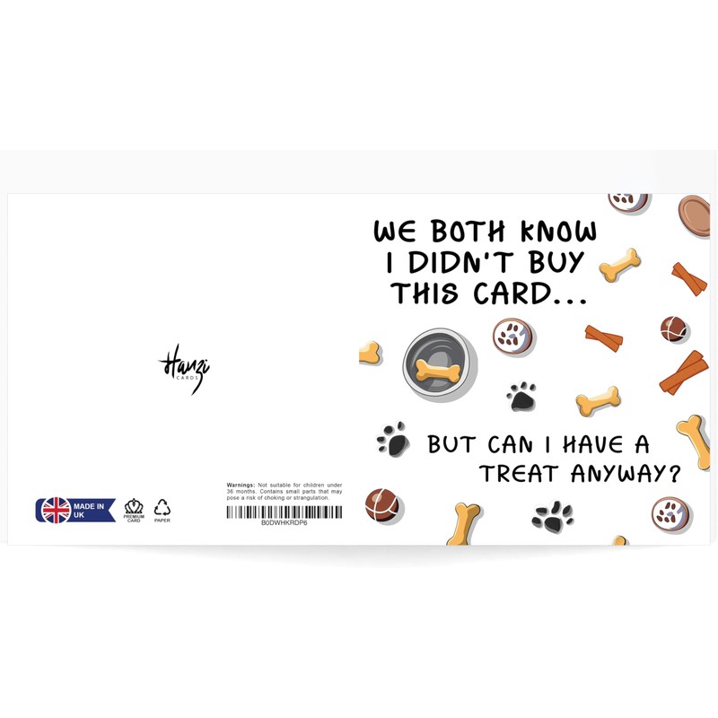 Dog Birthday Card – Perfect for the Owner or Lover – Funny Message: 'We Both Know I Didn’t Buy This Card, Can I Have a Treat Anyway?' – For Dog Dad & Mum – Made in the UK (Small)