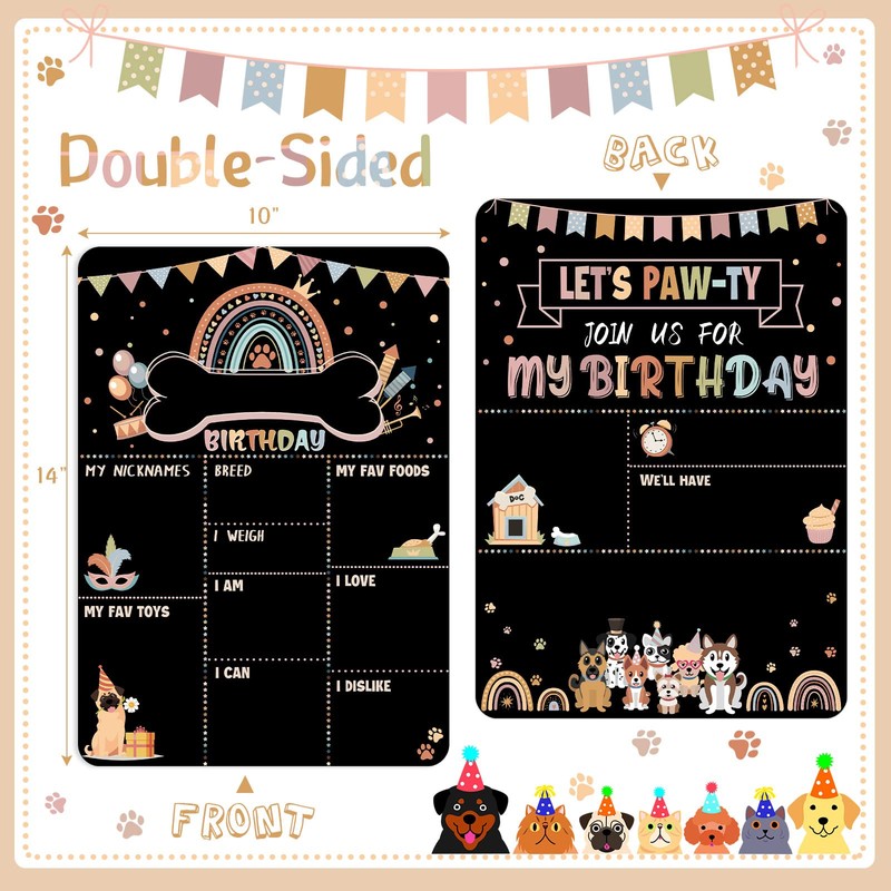 - Double Sided Chalkboard: dog birthday milestone board, you can write down the dog's birthday, name, weight, favorite food, favorite toys and other information; Fill in the milestone on one side and blank on the other side for customization