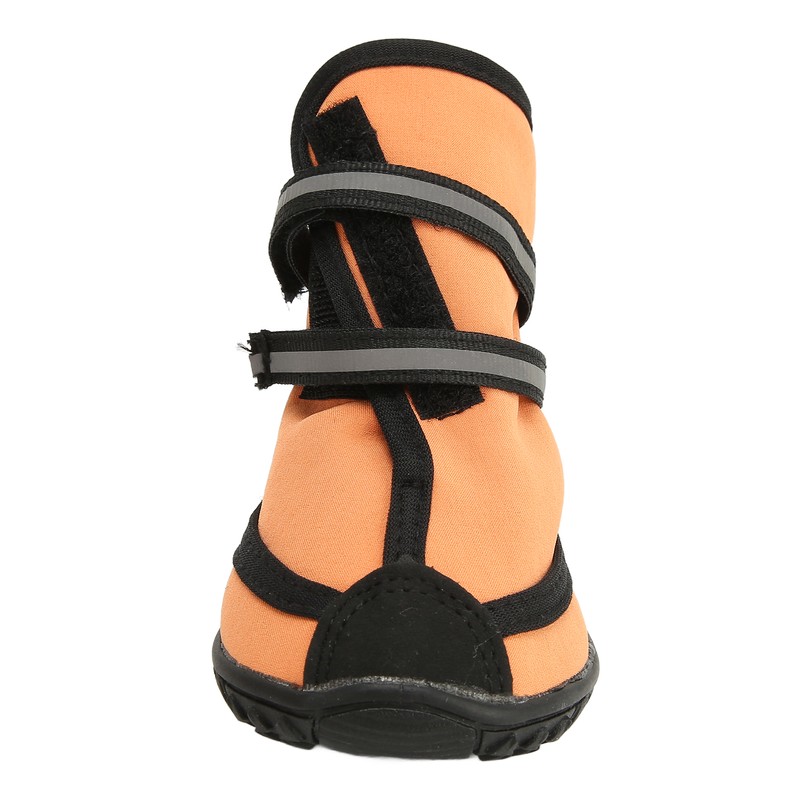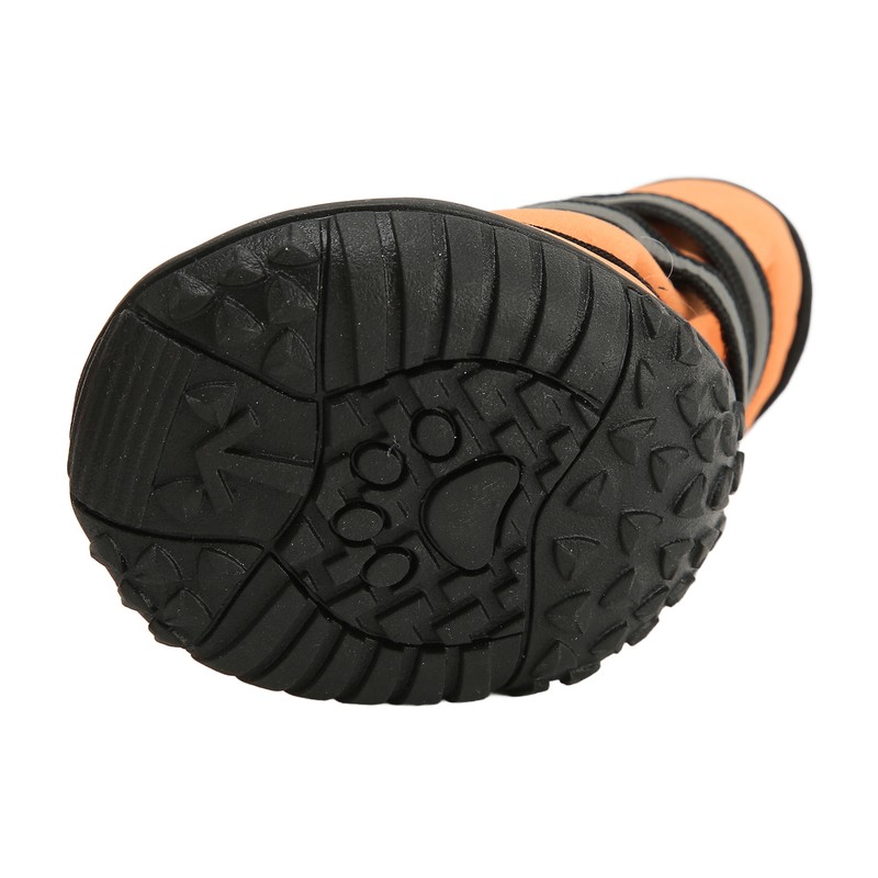 1、Anti Slip and Practical: The non slip, sturdy sole provides great grip and stability, allowing your pet to stand and move better on glossy floors. Great for hiking, backpacking, camping, trail running and other indoor and outdoor activities! 2、Paw Protection: Waterproof dog shoes cover the toe area with abrasion resistant rubber that can fully keep your dog's paws from sharp pricks, hot pavement, hard rocks, muddy roads, etc. 3、Adjustable Straps: Dog boots are easy to put on, and with two adjustable straps allowing for custom elasticity, the shoes can be secured firmly, even when your dog is running or chasing. 4、Reflective Design: Outdoor dog shoes' reflective trim and reflective stripes enhance visibility at night or in low light conditions, keeping your friend safe and you can easily spot them during outdoor activities. 5、Comfortable and Breathable: Dog shoes are lightweight and soft, making them comfortable to wear for long periods of time. The soft rubber soles bend easily and do not restrict your dog's movement.