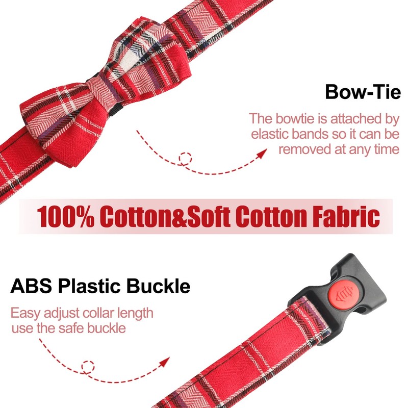 - SUPER CUTE COMFORTABLE BOWTIE DESIGN: Each bowtie is attached to the collar using an elastic strap, bowtie can be removed from the collar. Unlike most bowties made for dogs, the bow tie is hand-sewn and made of cotton and does not harm your pet's skin. These sets of collars are made for dogs and cats, adorable and novelty. Ideal fun decorative collar set for your loved pets and a cute bowtie will make your dog look charming.