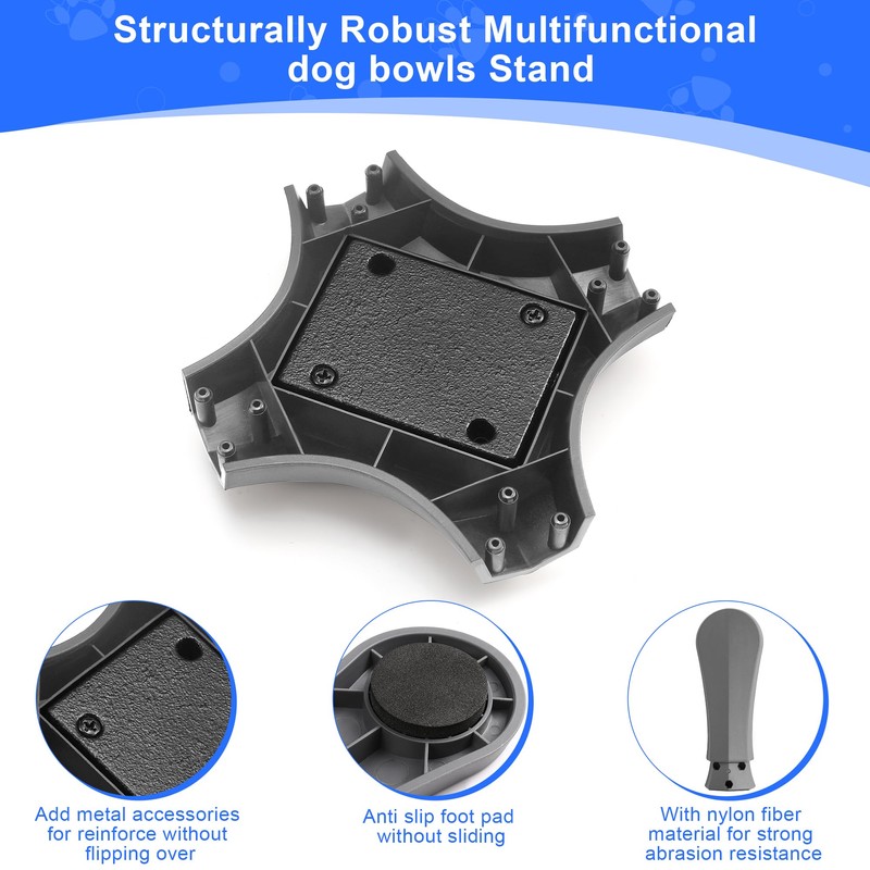 - 【Anti Slip Reinforce Design】The dog bowl stand features a metal base,EVA material foot pad and nylon-fiber reinforced bracket for anti slip reinforcement design.It increases the stability of the bracket and prevents the bowl from tipping over,which is especially important for pets who tend to get excited while eating.Additionally,the design can prevent pets from moving food or water in the bowl while eating or drinking to help keep the feeding area clean and tidy.they can provide a worry-free feeding experience for pets and their owners