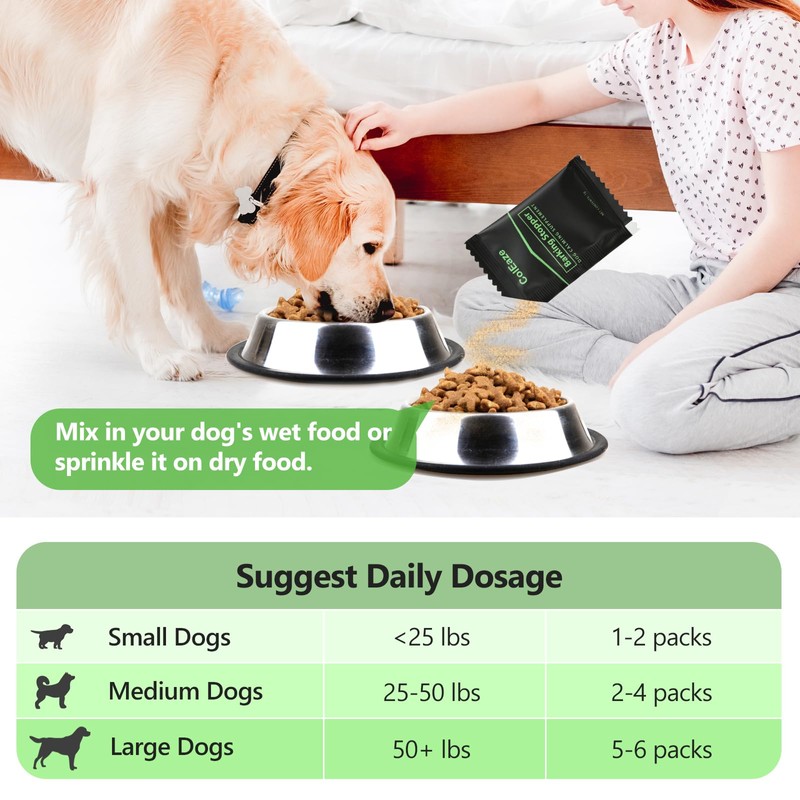 - Easy-to-Give Chicken Flavor: The tasty chicken-flavored powder mixes easily with your dog's regular food. Most dogs enjoy the flavor, making it simple to maintain a consistent calming routine.