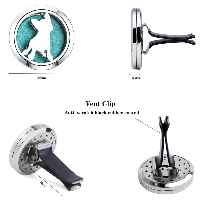 - 【Material 】High quality 316L stainless steel 30mm car diffuser vent clip, solid and smooth, anti-corrosion, easy to clean, we pair our diffuser car vent with reusable 10 color refill pads. Complete with a solid back and two magnets for a secure close, you’ll never have to worry about getting essential Oil all over your car.