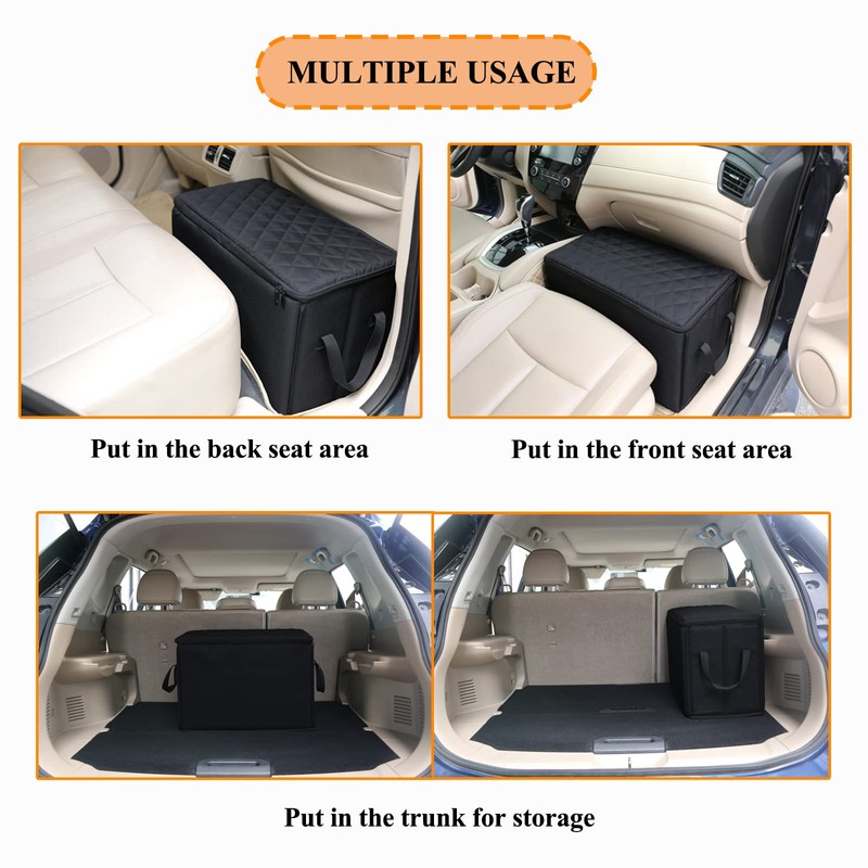 - 2. MULTIPLE USAGE: This dog seat extender can be used in the back seat or front seat area for your dog to have more room to lay down. It can also be used as seat storage units to fill with food, blanket, dog toys and more. Place it in the trunk while you want to storage something in the back.