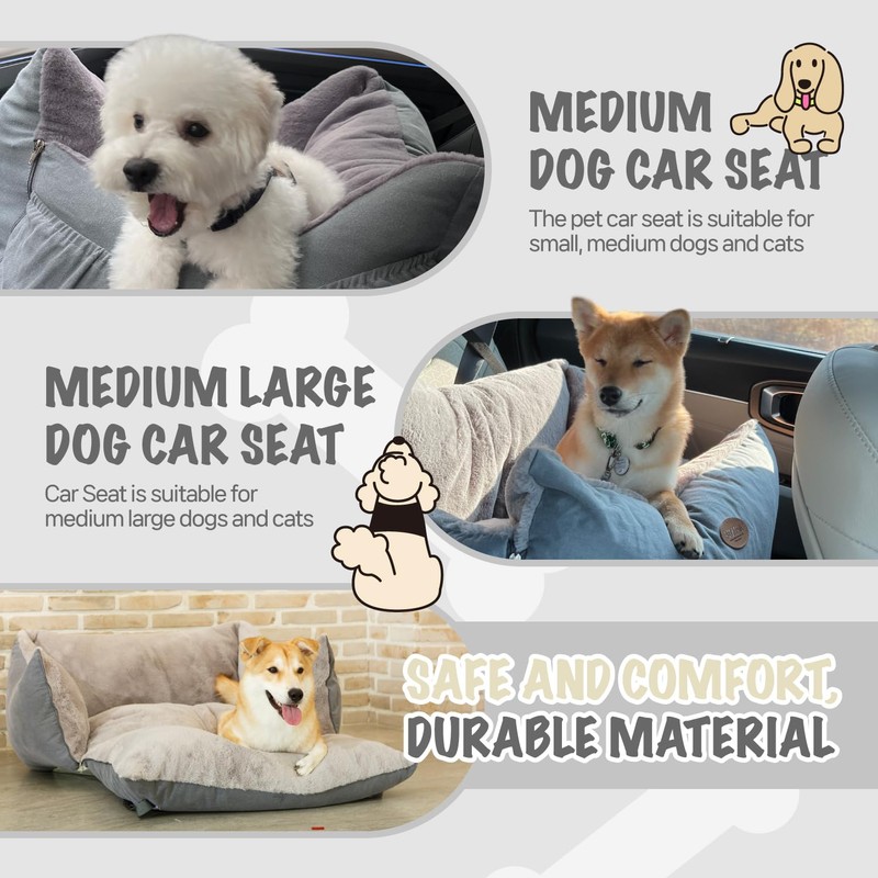 - [Multifunctional Using] : There is a pocket for storing a variety of items such as toys, handles, and harnesses (Handles are only available in XL size.) All parts can be disassembled and assembled for convenient washing and management If you open the front door with a zipper, this booster car seat can also transform into a cozy bed for car rides or even office use, making it an indispensable accessory for pet owners.