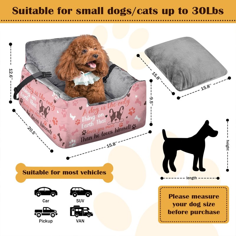 - Size: Small Medium sized dog car seat length 20 inches X width 21 inches X height 13 inches, pet car seat suitable for small and medium-sized pets weighing no more than 28 pounds, it is suitable for most types of car seats and car types.