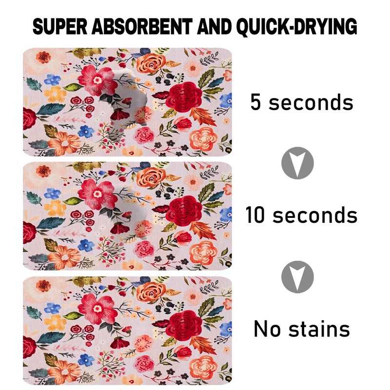 - Super Absorbent: When pets spill water on the mat, the absorbent surface quickly absorbs liquid to prevent overflow and keep the floor dry and clean.The rubber bottom layer prevents water from seeping through the floor