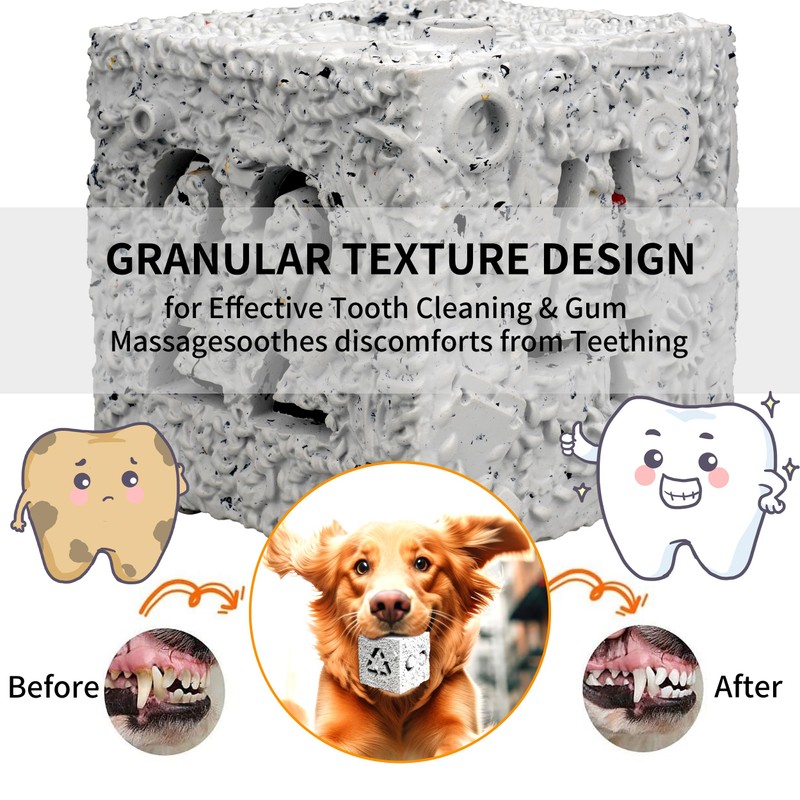 • ⬜ GRANULAR TEXTURED DESIGN - GREAT ORAL CARE: The newest dog treat block on the market, with a white color easy to spot by your furry friends and helpful in their oral care. The rigid blocks conform to reach some gaps in dogs teeth and gums, easily massage the tooth and clean it, thus soothing discomfort on doges teeth.