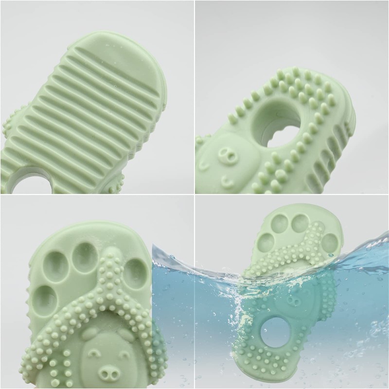Grinding and cleaning teeth: Teething dents on the slipper-shaped toy gently clean your teeth while playing, relieve teething discomfort, prevent tartar and other diseases, and support oral health.
