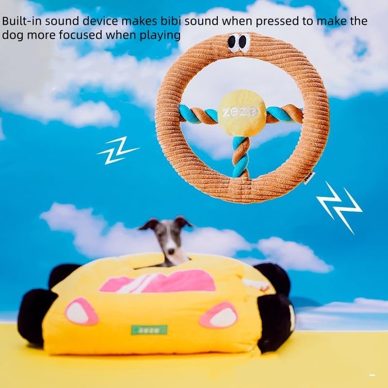 • Design Inspiration - Steering wheel shape makes the toy full of creativity, letting the pet become a little driver, through the steering wheel shape and bibi sound function, attracting the pet's attention, and at the same time, meets its needs for teething and interaction, avoiding destructive chewing behavior