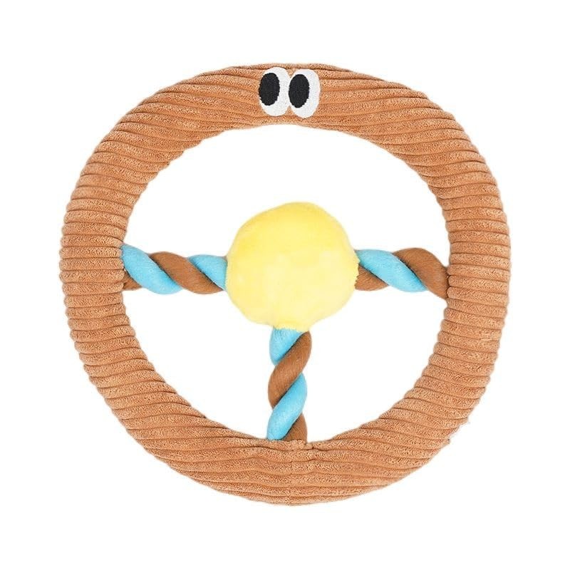 Dog Chewing Resistant Rope Knot, Audible self hi Teething Interactive cat and Dog Toys, Puppy Teething Chewing, Pulling and Relieving Boredom Rope Ball Steering Wheel Rope Toys (Curry)