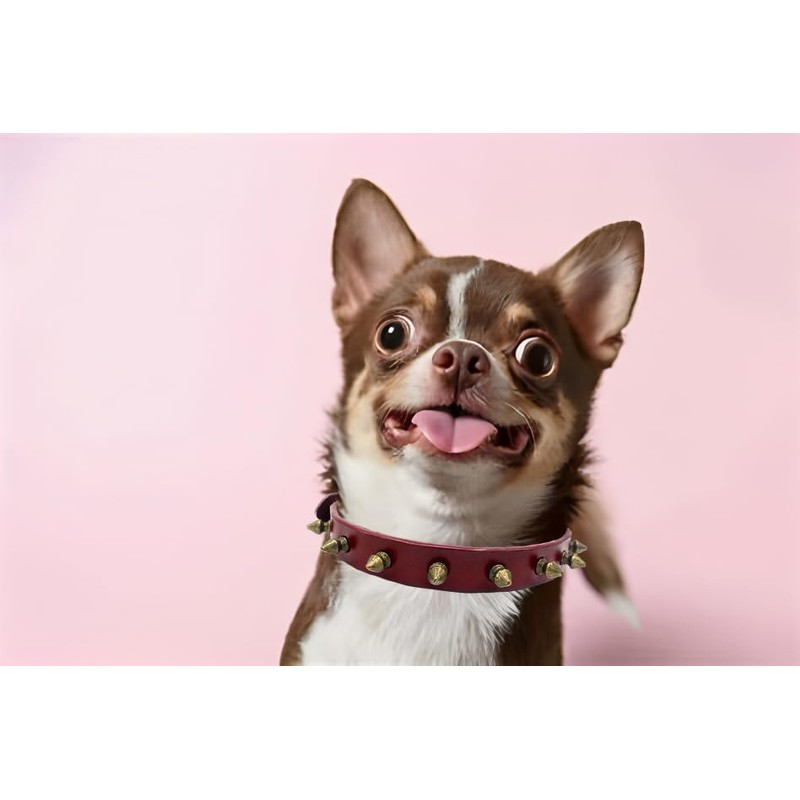 Dog Collar Neck Collar Leather Cute Collar Punk Studs Durable with Buckle Adjustable for Small Medium Large Dogs, Brown (Spiked), XS