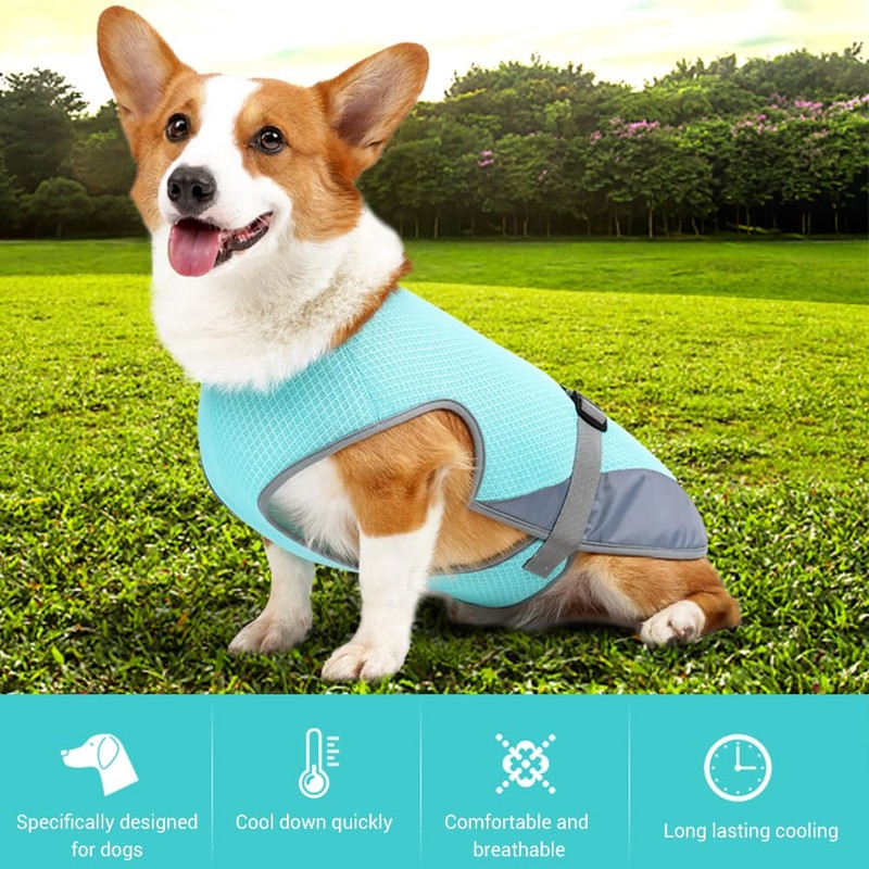 - 【Cool & Breathable】: The back of the vest is made of a special 3D mesh fabric combined with a middle layer designed to absorb and retain water, effectively reflecting heat, promoting evaporation, and promptly dissipating heat from the dog's body. The abdominal area utilizes cooling technology fabric to maintain a cool and dry environment, resisting external high temperatures and providing the dog with an all-around refreshing experience.