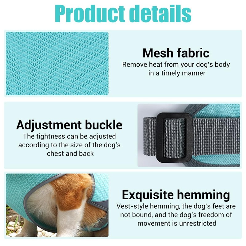 1.High-quality Material: Made with mesh fabrics, timely discharge the heat of the dog's body to help dogs prevent heat and cool down in time.