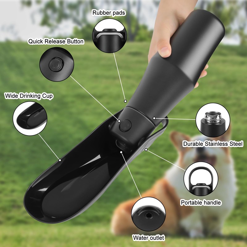 - Compact and practical - Suitable for any bag: Thanks to the slim design, the dog drinking bottle to go fits comfortably in a backpack, handbag or car cup holder. Whether you are walking, in the park, camping or hiking - it is always with you.