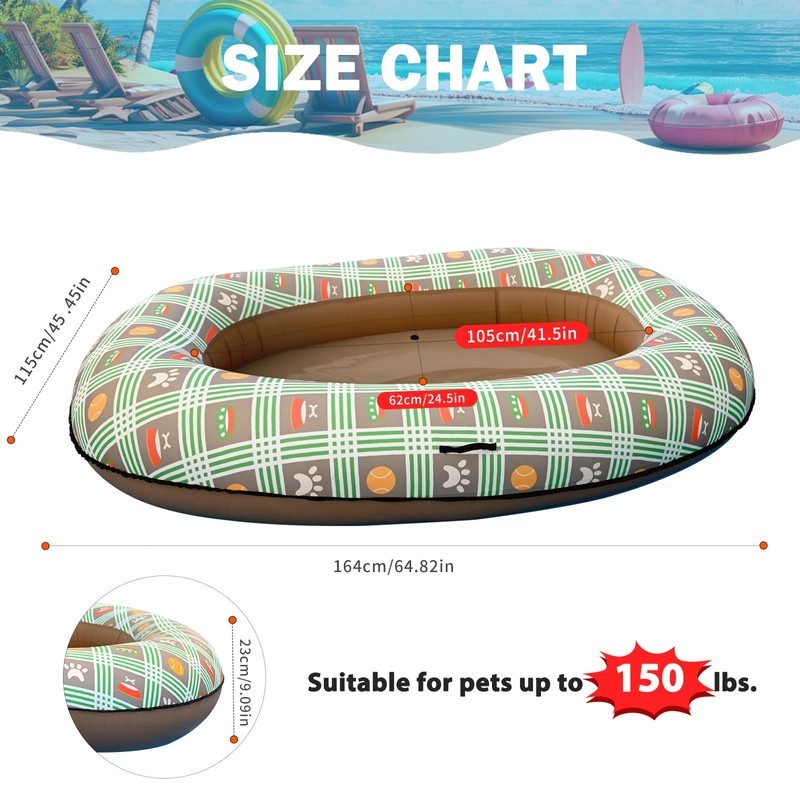 - 【Foldable & Portable】The inflatable pet floating row is a foldable design with a small volume after folding, which is convenient for travel and storage and can be carried anywhere. The inflated size is 64.82*9.09*45.45 inches, which can support pet dogs weighing less than 150 pounds. With it, your puppy can accompany you to swim in any pool you want, and enjoy a pleasant time