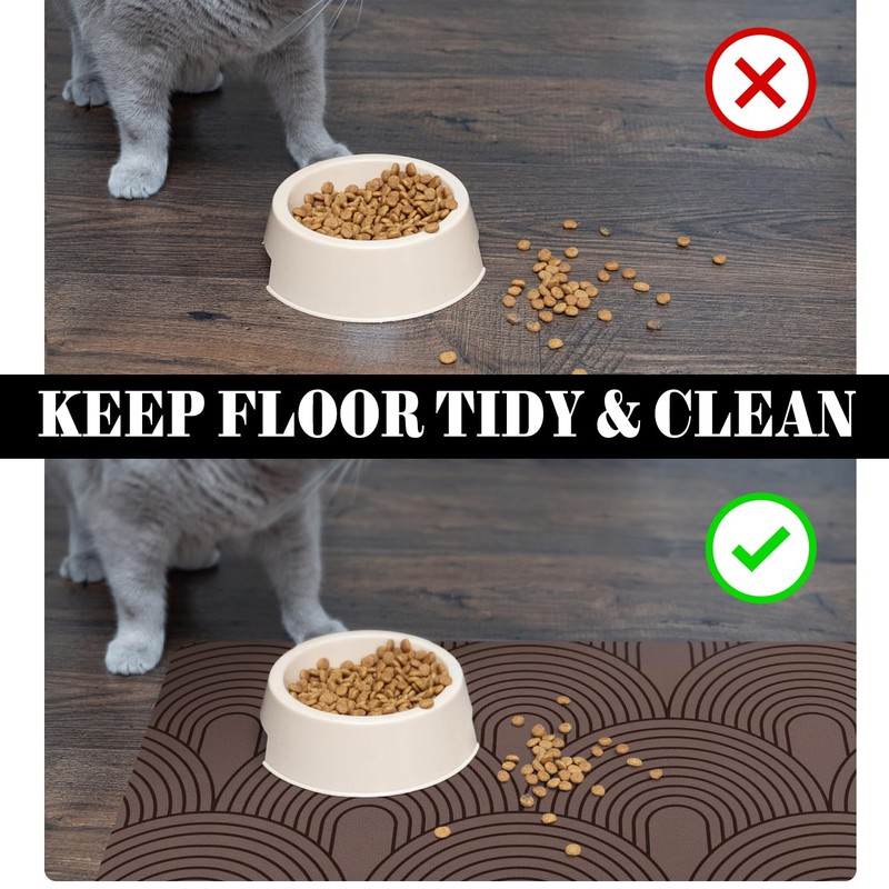 - 🐕Pet Friendly: Most pets would like to sit on the safe comfortable cat food mat, it can also be cat litter mat, pet sleeping mat. It's perfect to use the dog dish mat under automatic feeder, which is a great gift for your puppy and animal lovers.
