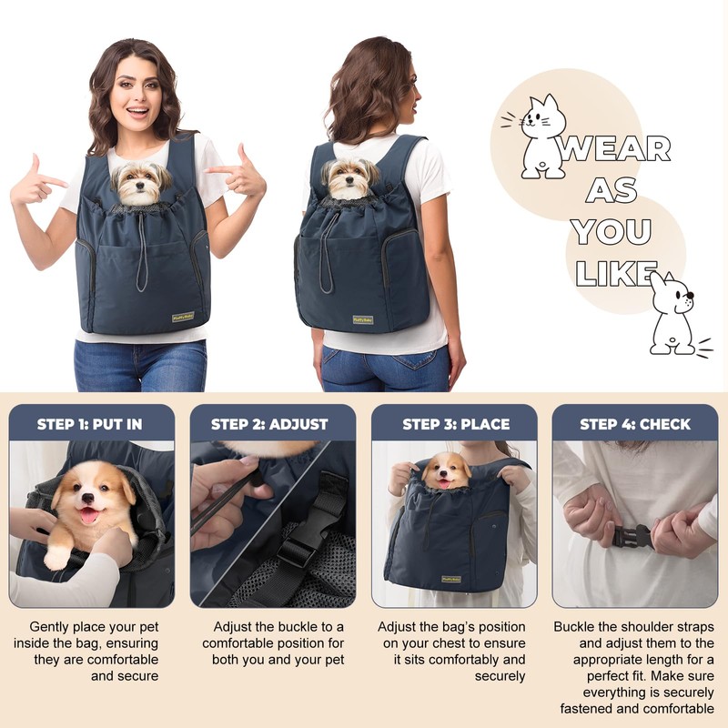 - 【Ideal Size for Your Pet】: The dog front backpack carrier measures 15''(L) x 8''(W) x 16''(H), supporting pets up to 13 lbs. It's ideal for small and medium-sized dogs, cats, puppies, and kittens. Ensure a proper fit by measuring your pet's length (neck to tail) and height (floor to shoulder) before purchase, providing ample space for your pet to relax.