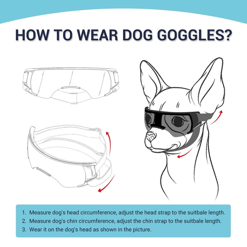 - Suitable for: These dog goggles are designed for small to medium dogs, such as Corgi, Poodles, Boston, Terriers, Pug, Schnauzer, Yorkshire etc. Not for very small dog.