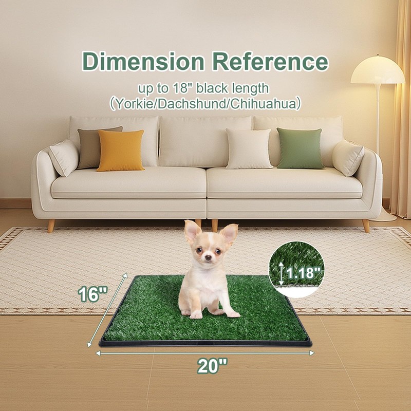 - THE PERFECT INDOOR SOLUTION - The pet toilet is the solution for pet accident-free living. Perfect for times when you're late coming home to let the dog out, or unable to let your pet outside due to bad weather. Ideal as a training tool for your puppy, it's also great in assisting an older dog that unable to go to the bathroom outside. The pet potty large size 16" x 20 " makes it ideal for puppies and small dogs.