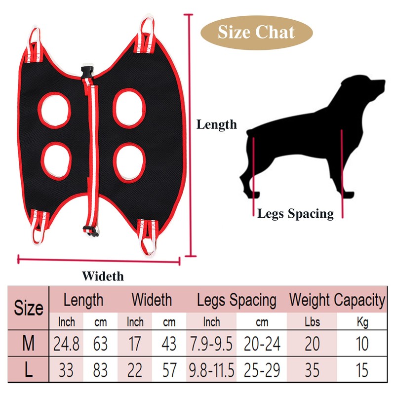- 🐱【Size Tip - Medium】Dog grooming hammock are available in 3 sizes. In order to make your pet fit perfectly with the grooming hammock, please measure the weight and distance between your dog or cat legs before purchasing. Medium is suitable for legs spacing about 7.9 - 9.5 inches(20 - 24cm), up to 20 lbs( 10 kg).