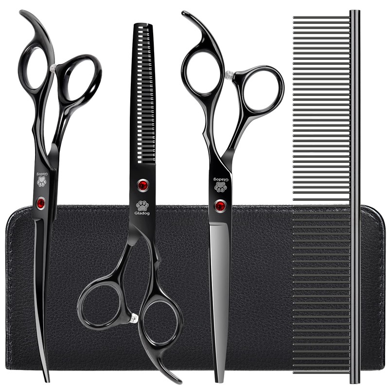 Dog Grooming Scissors Kit with Safety Round Tips, GLADOG Professional 5 in 1 Grooming Scissors for Dog and cat