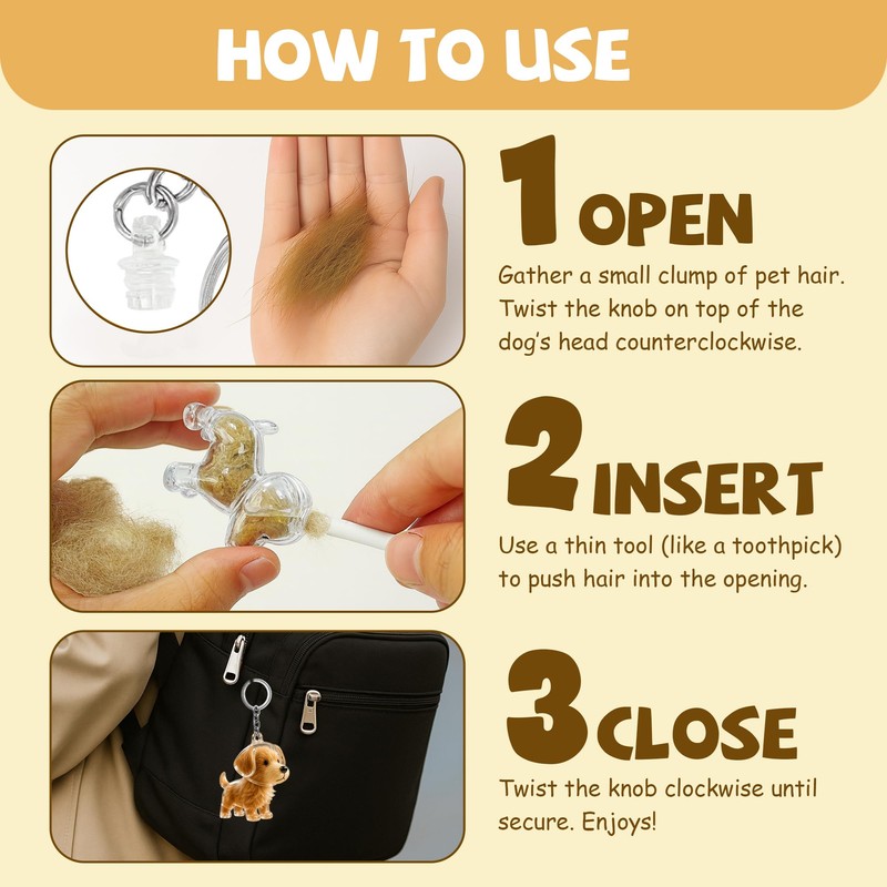 - 🎁 Gift-Ready for Pet Lovers: Each dog hair keychain keepsake includes a secure storage capsule and comes with easy instructions and a beautiful package. Perfect as a sympathy dog hair collector keychain or thoughtful pet lover gift.