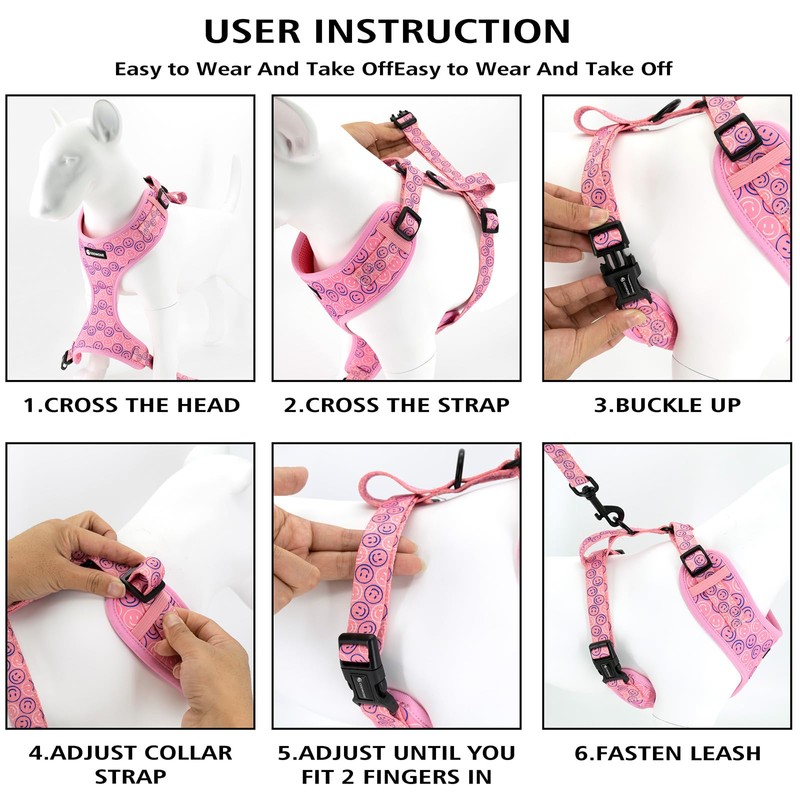 - 【Fully Adjustable Collar & Chest Strap】This adjustable no pull harness features 3 easy adjusting straps around the body. You can use its 2 neck straps and 1 chest straps to create a perfect fit for your dog with some room for growth. No worries about slipping out or choking.Just enjoy the freedom time while walking, running, shopping and training.