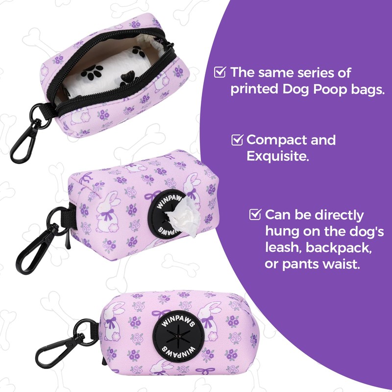 Dog Harness and Lead, Bow Tie Collar Set with Dog Poop Bag Holder and Bandanas,Escape Proof Adjustable Puppy Cat Vest with Soft Mesh Padded, Pet Supplies for Small Medium Dogs Kitten(Purple Rabbit,XS)