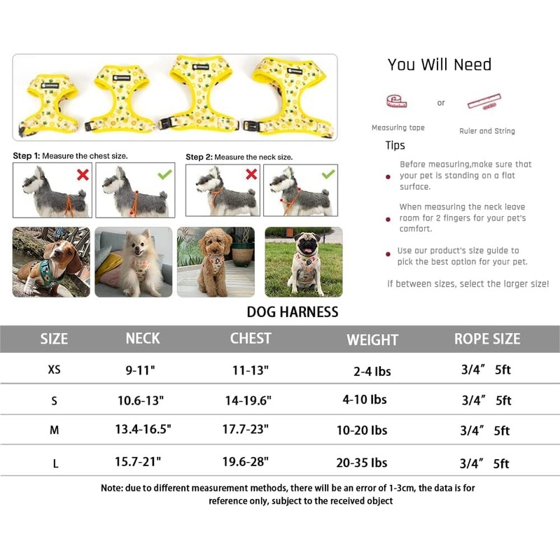 - 🦖【Measure Before Buying】This dog vest harness is suitable for small medium dogs and cats, please don't purchase based on previous experience, please always measure the widest part of your pet's chest before ordering. If the chest girth is between two sizes, we recommend you to choose the larger size. please don't choose size by weight only.