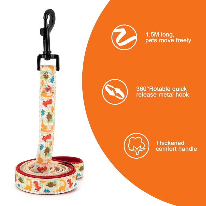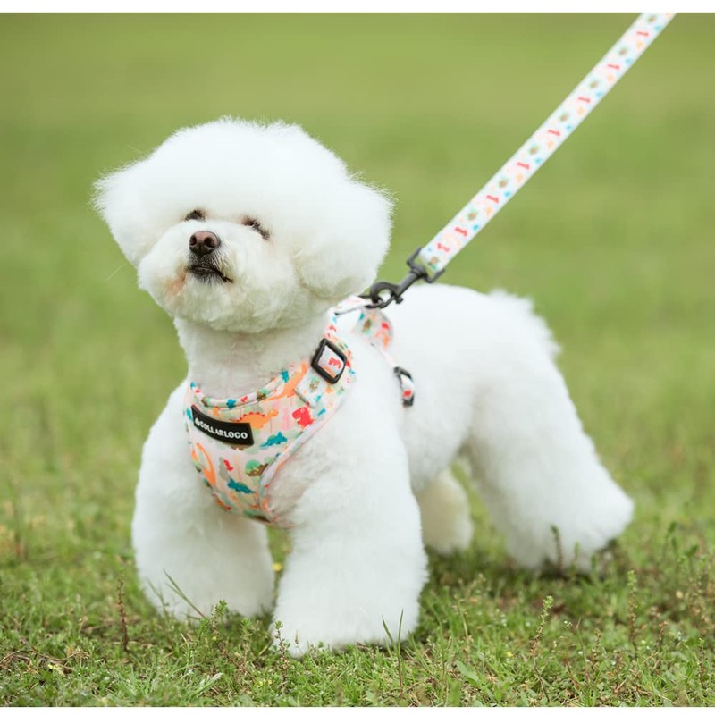 - 🦖【Pet Supplies 3 Sets 】You will get 1x super soft harness and 1x flexible dog lead and 1x dog pop bag holder at the same time! the dog leash comes along with comfortable cushion padded to the handshaking part to prevent the hand from being injured due to excessive tension,we hope you will have a more comfortable daily walking time with your furry friends through this little designs.