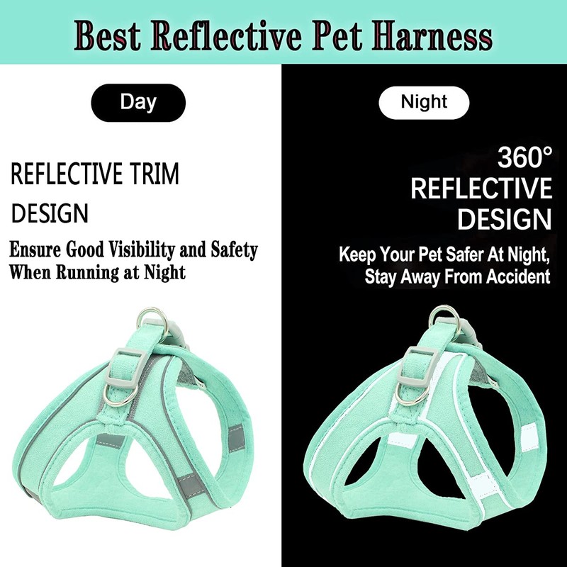 - 🎀Reflective & Safe - Reflective dog harness strap design, makes it visible in dark night and low light conditions, improves safety when dogs and cats walking at night. And the vest-type design evenly distributes the stress area of the chest and shoulders, reducing stress on dogs.