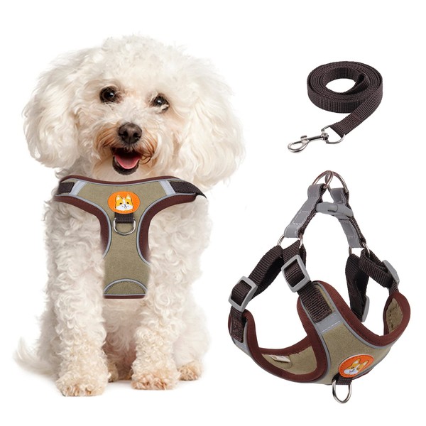 • 🐾【Super Comfortable & Breathable】: This small dog harness is perfect for any day's outing and training. The dog harness is made of high quality suede fabric, very soft and comfortable, breathable and durable, it will protect your pet's skin and won't feel stuffy.