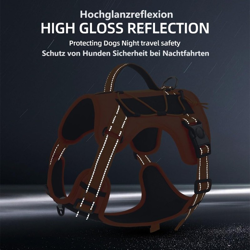 The dog harness has a unique reflective stripe design that can warn pedestrians and vehicles when walking your dog in the evening and keep your dog safe