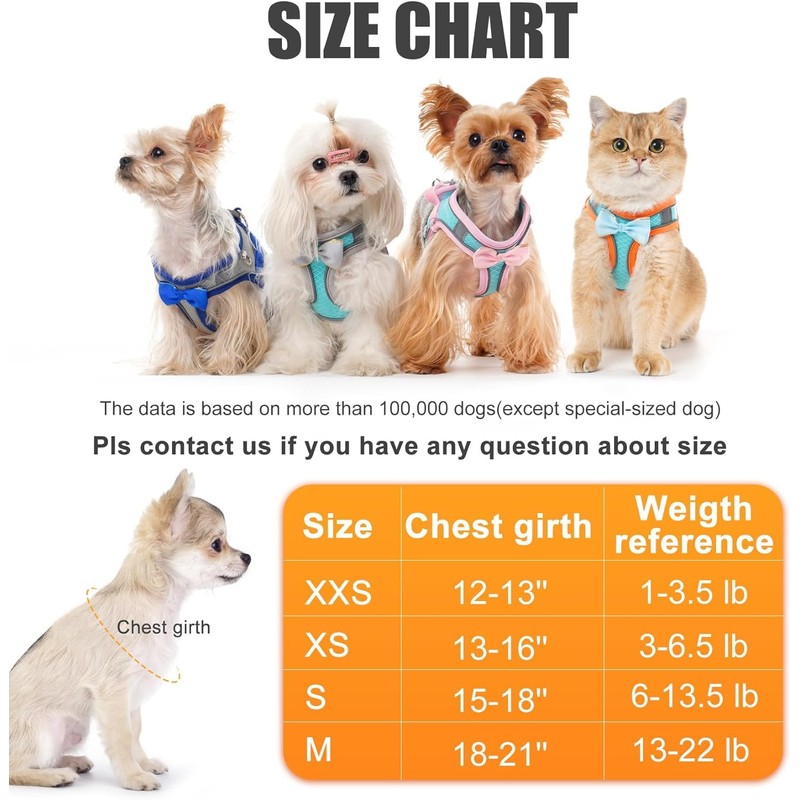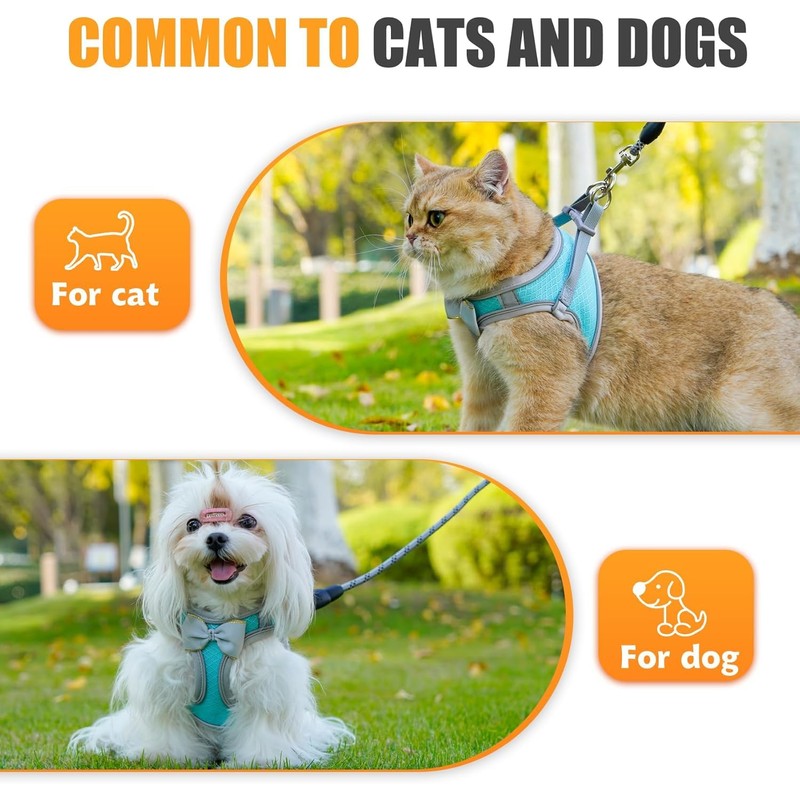 • Escape-proof Design: Worried about your dog or cat slipping out of their harness? With our escape-proof design, you can say goodbye to those worries. The double-strap system and sturdy D-ring keep your dog securely harnessed during walks or outdoor activities.