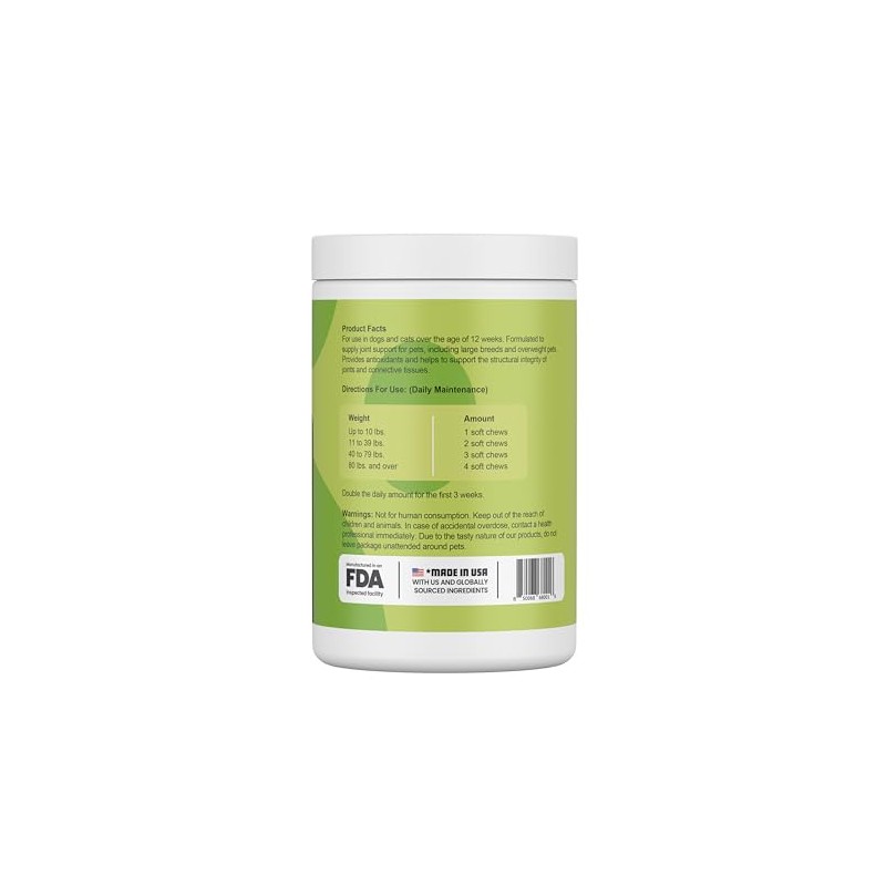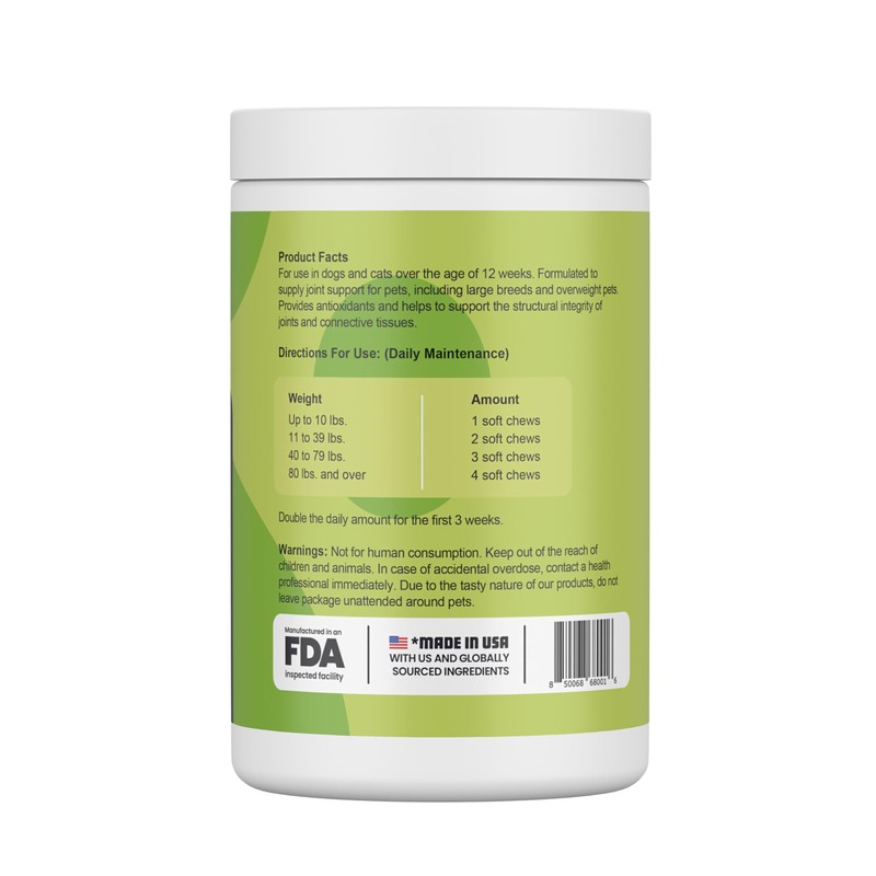 - Supports Joint Health: Glucosamine, chondroitin, and MSM team up to maintain healthy joints and keep your pup moving with ease.