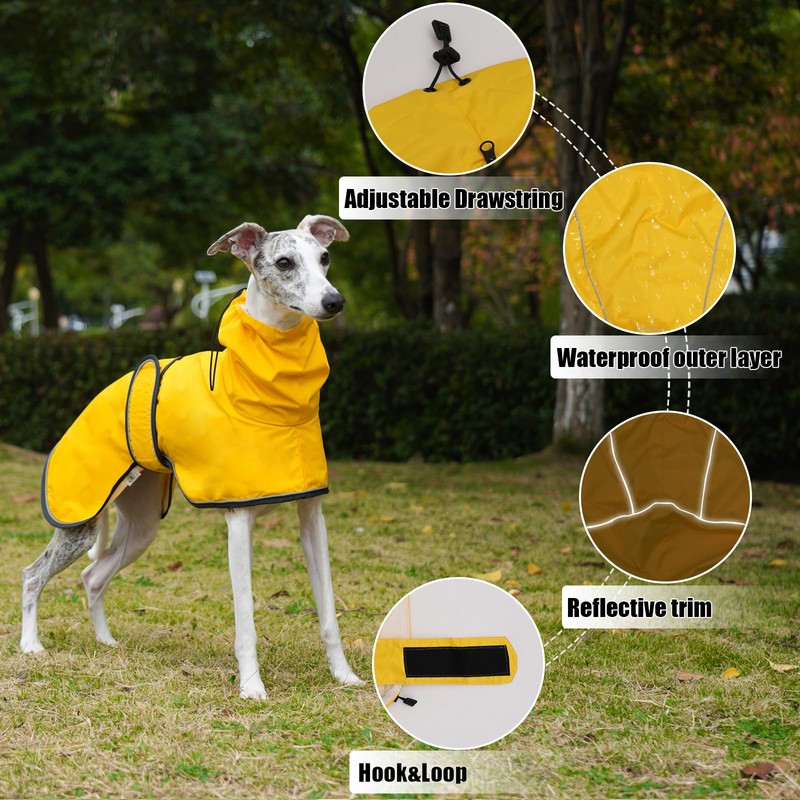 Dog Jacket Adjustable Lightweight Raincoat with Reflective Straps and Harness Hole Best Gift for Greyhounds, Lurchers and Whippets -Yellow -XXXL