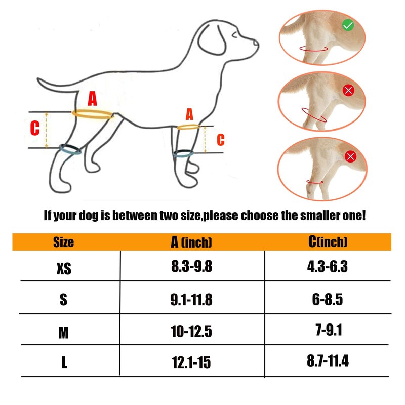 - 【Size Measurement】Please measure accurately before purchasing and refer to the size chart for selection to ensure the size is perfect for your dog. If your dog's knee comes in two sizes, please choose the smaller size.
