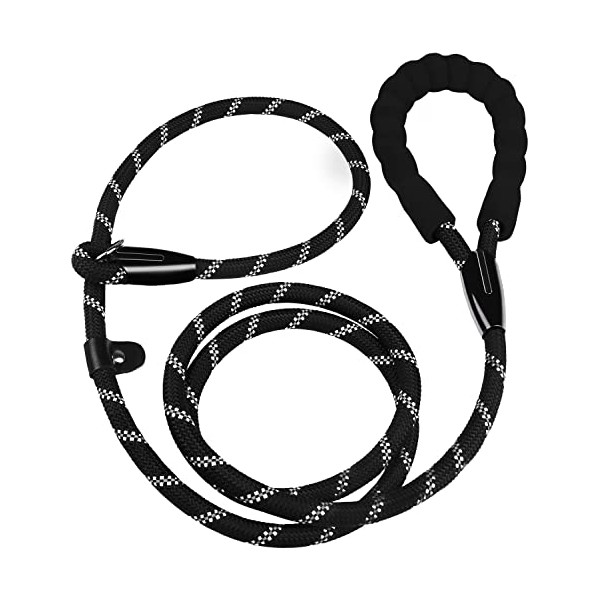 Dog Leash, 6 FT Heavy Duty Dog Leash, Durable Premium Quality Strong Training Rope Slip Leash with Comfortable Padded Handle and Highly Reflective Threads for Small Medium and Large Dogs, (Black)