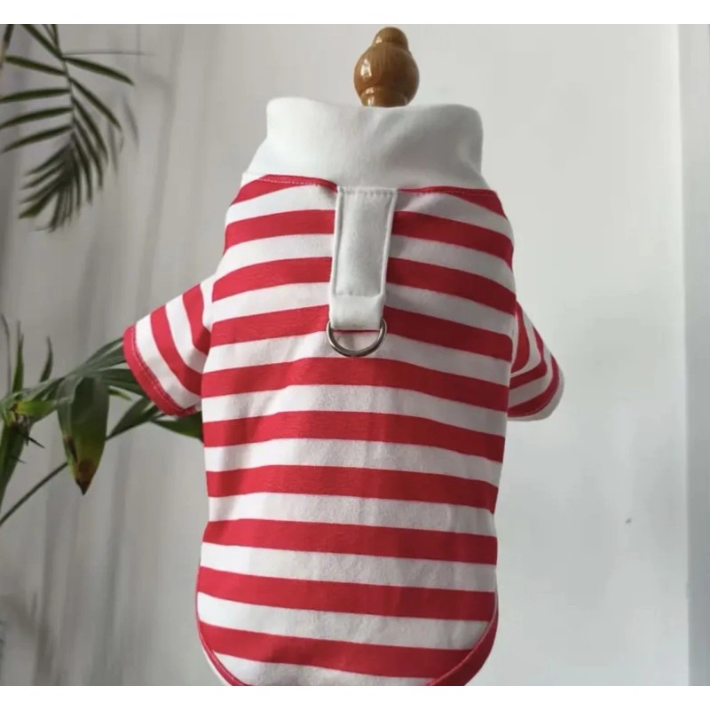 All-season striped dog t-shirt with leash - breathable, stylish, easy to pull design for small to large dogs - machine washable polyester pet clothing