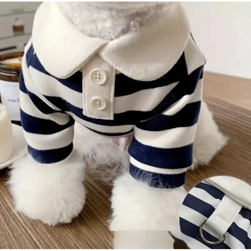 Dog Leash All-season striped dog t-shirt with leash - breathable, stylish,(2pcs)