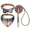 Dog Leash Collar Set - 3 Pack Plaid Pattern Adjustable Escape Proof Leash Collar Set for Outdoor Walking