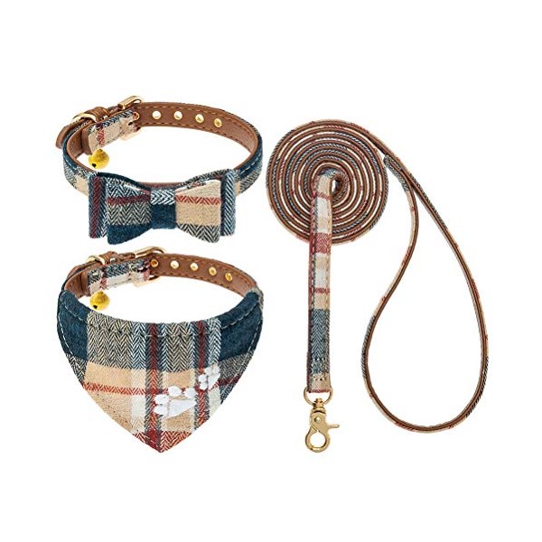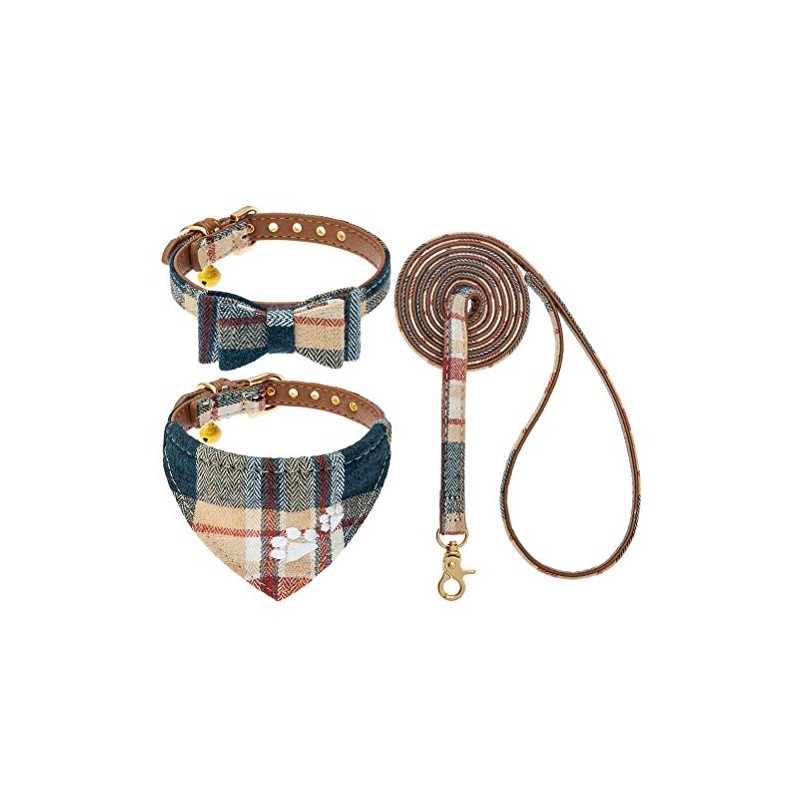 - Practical Set: The package comes with a bow tie collar, a bandanna collar and a leash. This leash and collar set offers a safe option for your furry baby to explore the world.