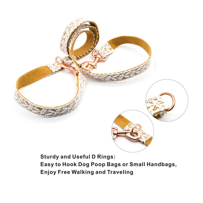 Dog Leash Cotton Lace Handmade 4-5 FT Adjustable Comfortable Unique Leashes for Small Medium Large Dogs Brown Double