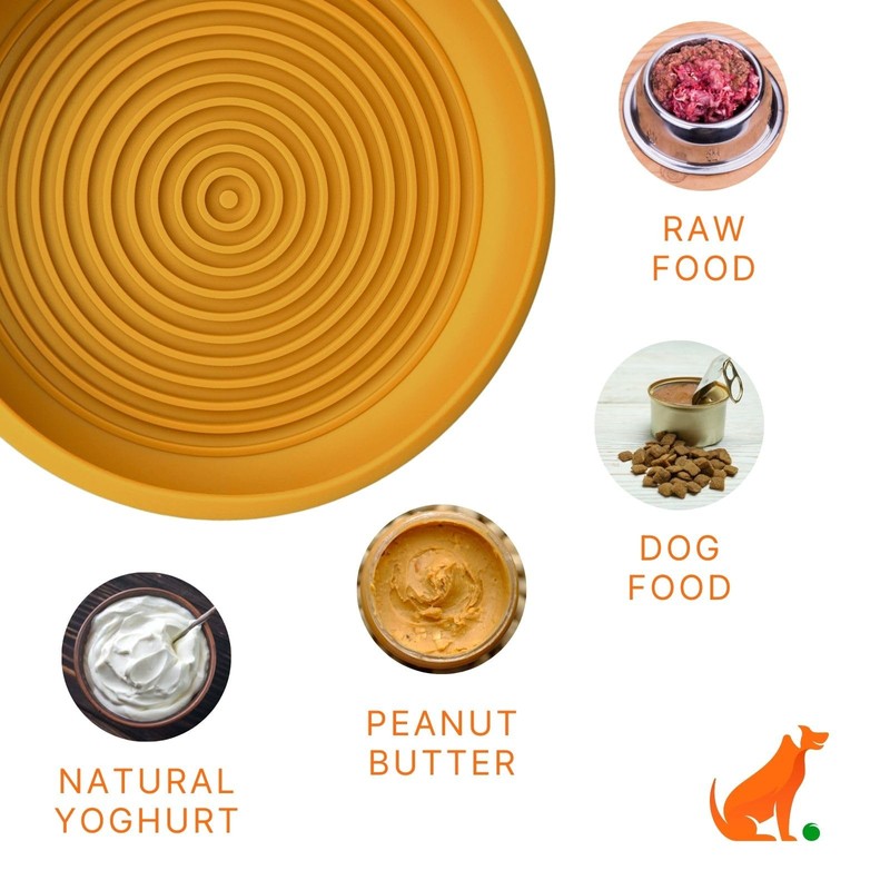 Dog Lick Mat Catcher, Slow Feeder for Anxiety Reduction, Boredom Buster, Easy to Spread with Peanut Butter, Yoghurt, or Treats, Suitable All Dog Sizes (Mustard)