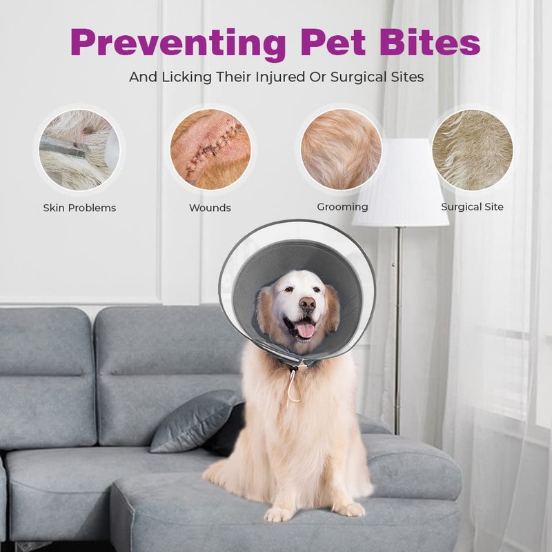 - Recommended by Vet: the dog cones are a safe and humane way to prevent animals from aggravating a healing wound or injury. The ergonomic soft dog cones after surgery can also be used for grooming pets, bathing pets, medical treatment and cutting nails. Suitable for most pets, such as golden retriever, labrador, corgi, cat species, etc.