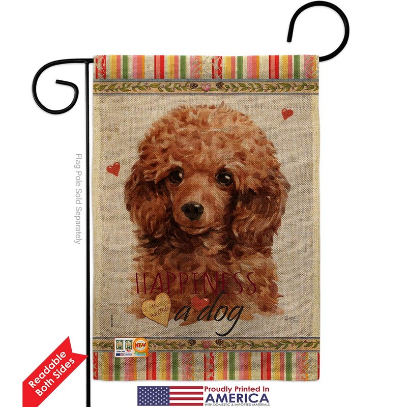 Dog Miniature Poodle Happiness Burlap Garden Flag Set with Stand Animals Puppy Spoiled Paw Canine Fur Pet Nature Farm Animal Creature Small Gift Yard House Banner Double-Sided Made In USA 13 X 18.5