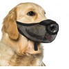 - HUMANIZED DESIGN: This full-coverage nose mesh design muzzle is designed with quick-release buckle and adjustable hook and loop for easy putting on and taking off your dog, and the adjustable neck and forehead straps make it difficult for your pet to take it off. The dog muzzle cover can provide enough space for your dog to sniff, pant and yawn normally. Especially when out and about, he can drink directly without removing the muzzle